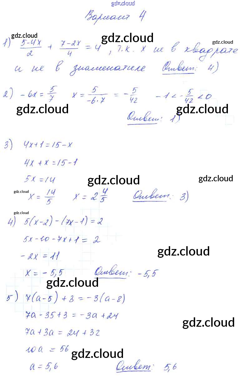 Ответ на задание вариант 4 Самостоятельные и контрольные работы Алгебра  за 7 (седьмой) класс Глазков, Гаиашвили УМК  2019