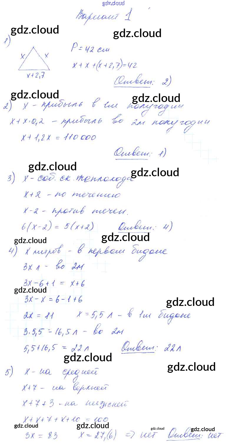 Ответ на задание вариант 1 Самостоятельные и контрольные работы Алгебра  за 7 (седьмой) класс Глазков, Гаиашвили УМК  2019