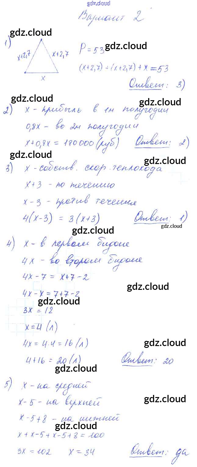 Ответ на задание вариант 2 Самостоятельные и контрольные работы Алгебра  за 7 (седьмой) класс Глазков, Гаиашвили УМК  2019
