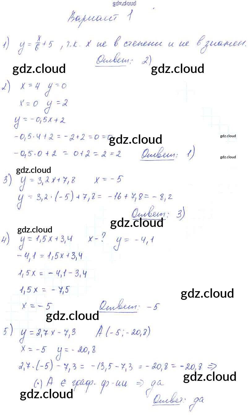 Ответ на задание вариант 1 Самостоятельные и контрольные работы Алгебра  за 7 (седьмой) класс Глазков, Гаиашвили УМК  2019