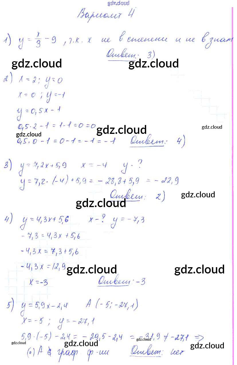 Ответ на задание вариант 4 Самостоятельные и контрольные работы Алгебра  за 7 (седьмой) класс Глазков, Гаиашвили УМК  2019