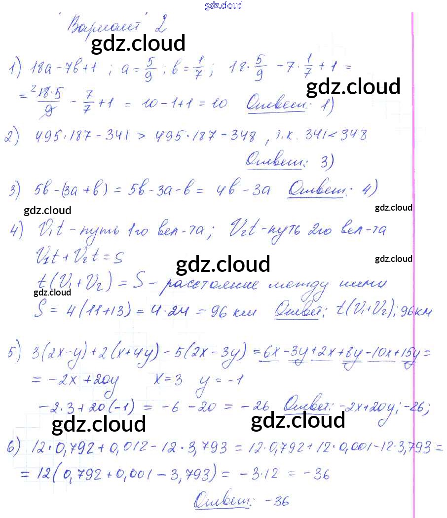 Ответ на задание вариант 2 Самостоятельные и контрольные работы Алгебра  за 7 (седьмой) класс Глазков, Гаиашвили УМК  2019