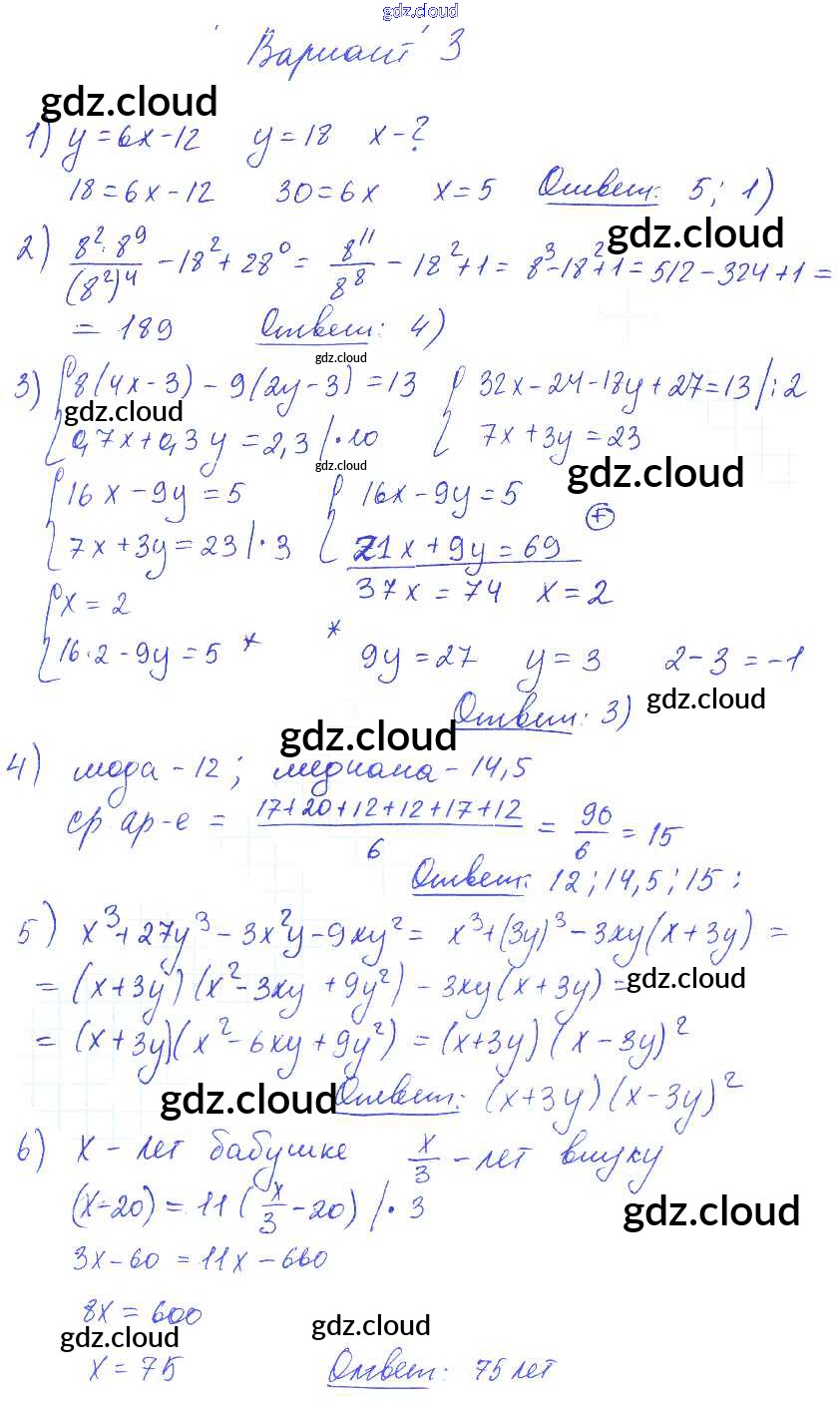 Ответ на задание вариант 3 Самостоятельные и контрольные работы Алгебра  за 7 (седьмой) класс Глазков, Гаиашвили УМК  2019