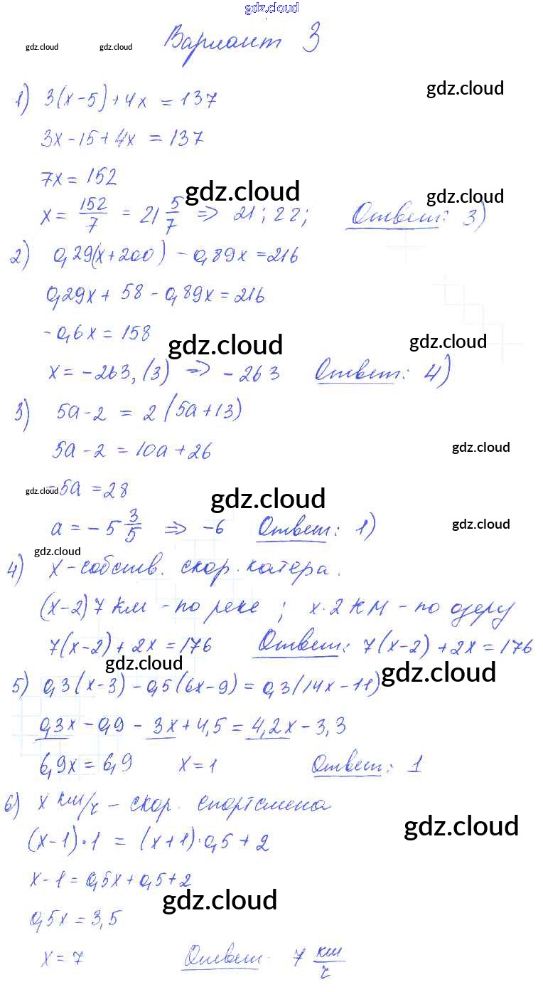 Ответ на задание вариант 3 Самостоятельные и контрольные работы Алгебра  за 7 (седьмой) класс Глазков, Гаиашвили УМК  2019