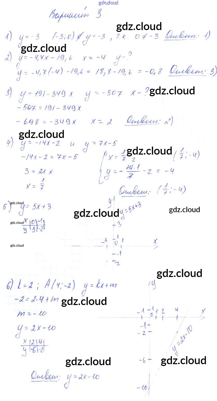 Ответ на задание вариант 3 Самостоятельные и контрольные работы Алгебра  за 7 (седьмой) класс Глазков, Гаиашвили УМК  2019