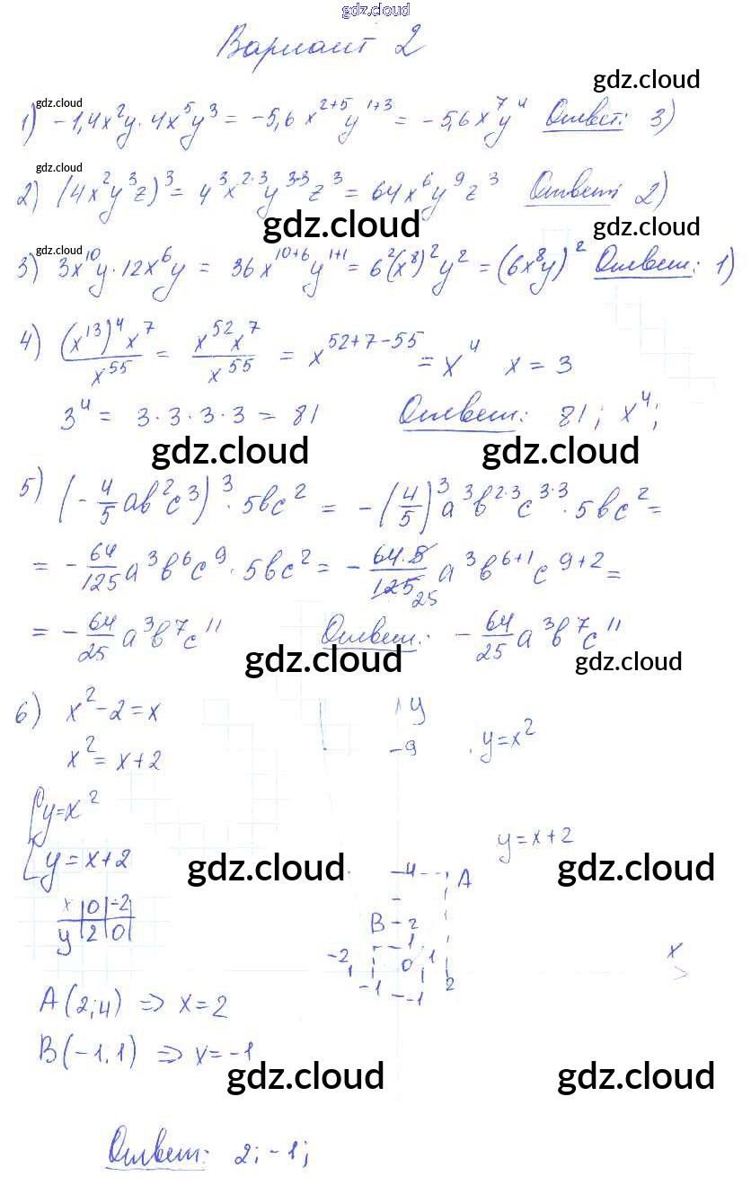 Ответ на задание вариант 2 Самостоятельные и контрольные работы Алгебра  за 7 (седьмой) класс Глазков, Гаиашвили УМК  2019