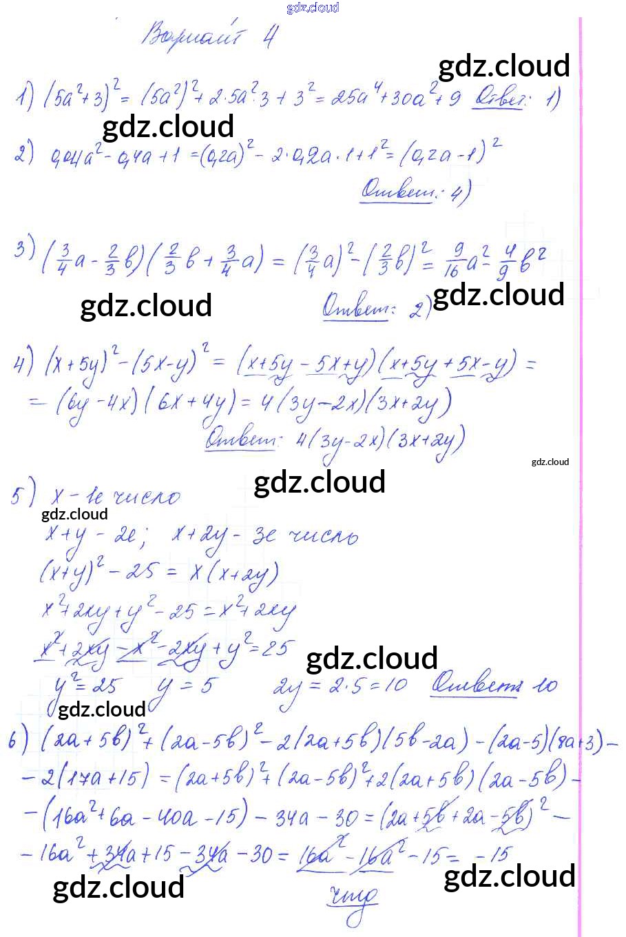 Ответ на задание вариант 4 Самостоятельные и контрольные работы Алгебра  за 7 (седьмой) класс Глазков, Гаиашвили УМК  2019
