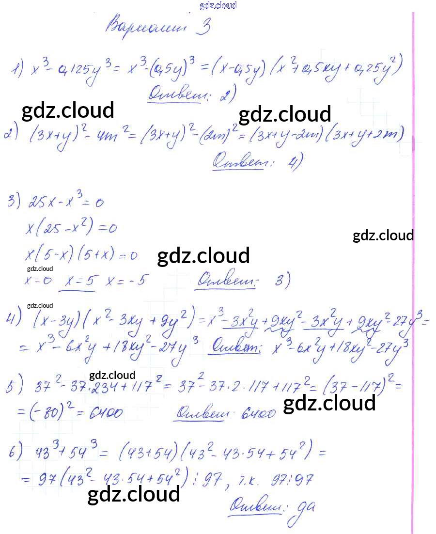Ответ на задание вариант 3 Самостоятельные и контрольные работы Алгебра  за 7 (седьмой) класс Глазков, Гаиашвили УМК  2019