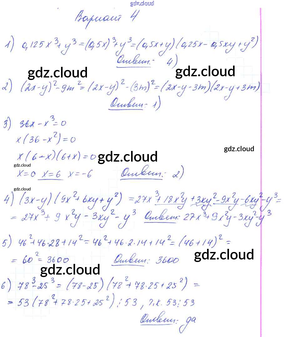 Ответ на задание вариант 4 Самостоятельные и контрольные работы Алгебра  за 7 (седьмой) класс Глазков, Гаиашвили УМК  2019