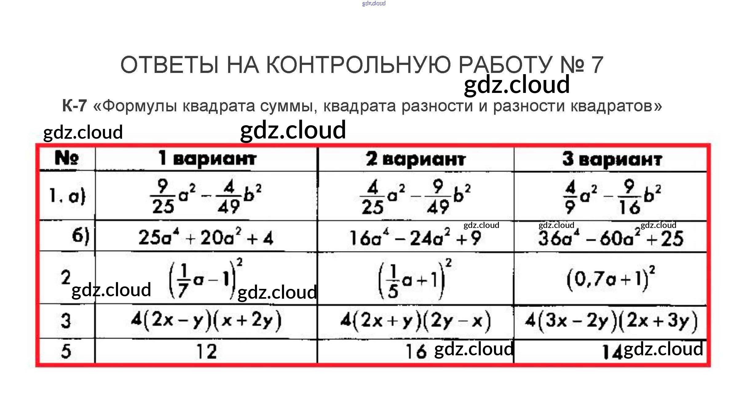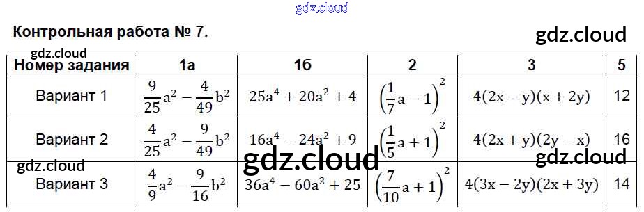 Ответ на задание 7 Контрольно-измерительные материалы (КИМ) Алгебра  за 7 (седьмой) класс Глазков, Гаиашвили   2014