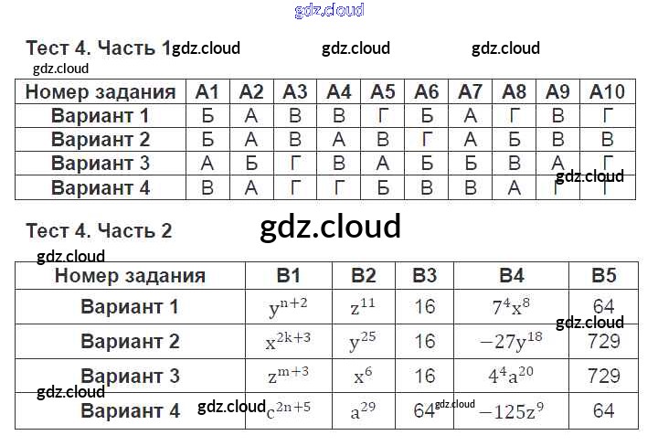 Ответ на задание 4 Тесты Алгебра за 7 (седьмой) класс Ключникова, Комиссарова УМК 2011 ФГОС онлайн и без номера телефона.