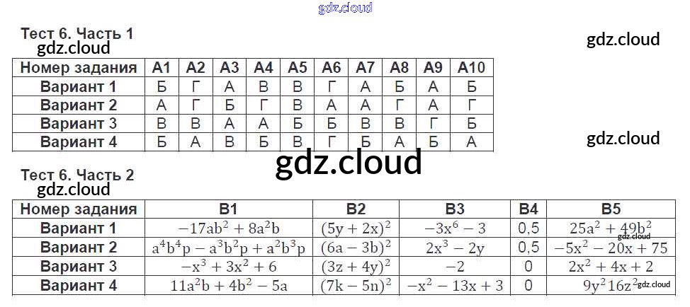 Ответ на задание 6 Тесты Алгебра за 7 (седьмой) класс Ключникова, Комиссарова УМК 2011 ФГОС онлайн и без номера телефона.