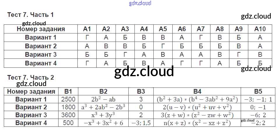 Ответ на задание 7 Тесты Алгебра за 7 (седьмой) класс Ключникова, Комиссарова УМК 2011 ФГОС онлайн и без номера телефона.