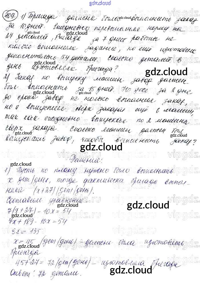Ответ на задание 109 Учебник Алгебра за 7 (седьмой) класс Колягин, Ткачева, Федорова, Шабунин УМК 2012 ФГОС онлайн и без номера телефона.