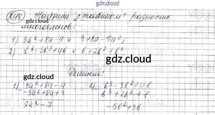 Ответ на задание 248 Учебник Алгебра за 7 (седьмой) класс Колягин, Ткачева, Федорова, Шабунин УМК 2012 ФГОС онлайн и без номера телефона.