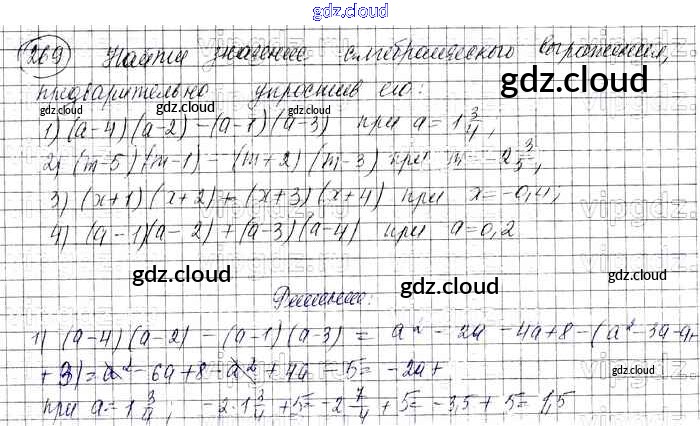 Ответ на задание 269 Учебник Алгебра за 7 (седьмой) класс Колягин, Ткачева, Федорова, Шабунин УМК 2012 ФГОС онлайн и без номера телефона.