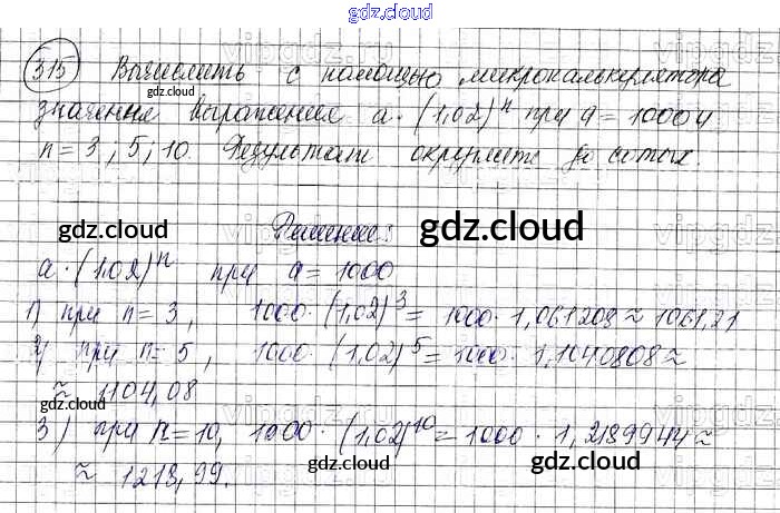 Ответ на задание 315 Учебник Алгебра за 7 (седьмой) класс Колягин, Ткачева, Федорова, Шабунин УМК 2012 ФГОС онлайн и без номера телефона.