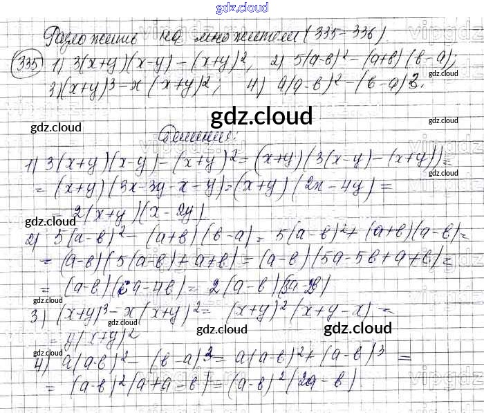 Ответ на задание 335 Учебник Алгебра за 7 (седьмой) класс Колягин, Ткачева, Федорова, Шабунин УМК 2012 ФГОС онлайн и без номера телефона.
