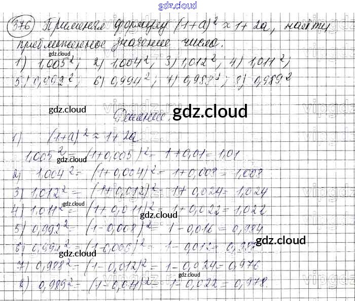 Ответ на задание 376 Учебник Алгебра за 7 (седьмой) класс Колягин, Ткачева, Федорова, Шабунин УМК 2012 ФГОС онлайн и без номера телефона.