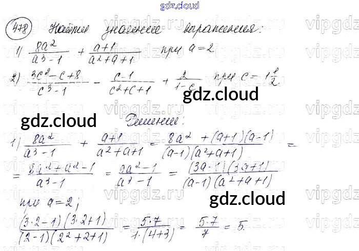 Ответ на задание 478 Учебник Алгебра за 7 (седьмой) класс Колягин, Ткачева, Федорова, Шабунин УМК 2012 ФГОС онлайн и без номера телефона.