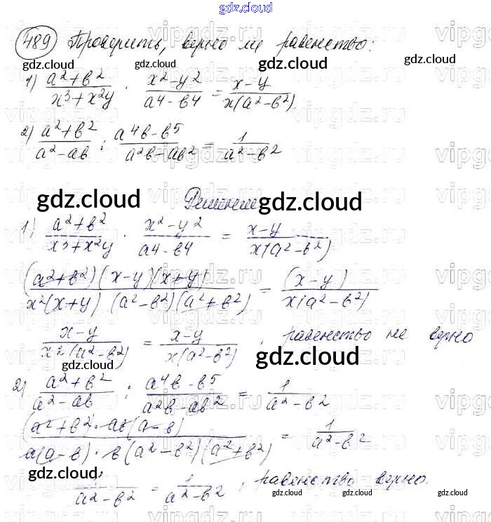 Ответ на задание 489 Учебник Алгебра за 7 (седьмой) класс Колягин, Ткачева, Федорова, Шабунин УМК 2012 ФГОС онлайн и без номера телефона.