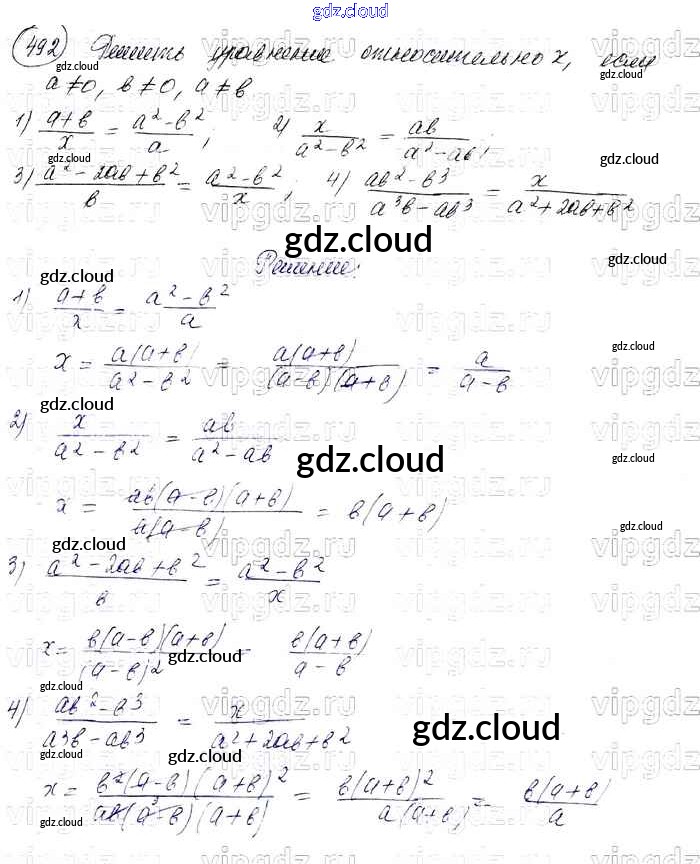 Ответ на задание 492 Учебник Алгебра за 7 (седьмой) класс Колягин, Ткачева, Федорова, Шабунин УМК 2012 ФГОС онлайн и без номера телефона.