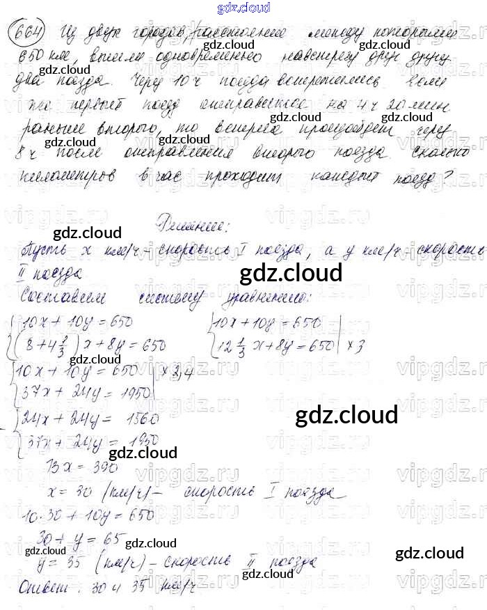Ответ на задание 664 Учебник Алгебра за 7 (седьмой) класс Колягин, Ткачева, Федорова, Шабунин УМК 2012 ФГОС онлайн и без номера телефона.