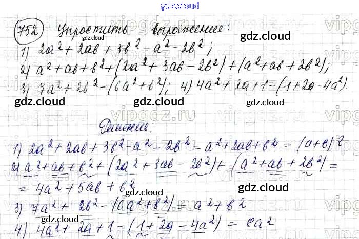Ответ на задание 752 Учебник Алгебра за 7 (седьмой) класс Колягин, Ткачева, Федорова, Шабунин УМК 2012 ФГОС онлайн и без номера телефона.