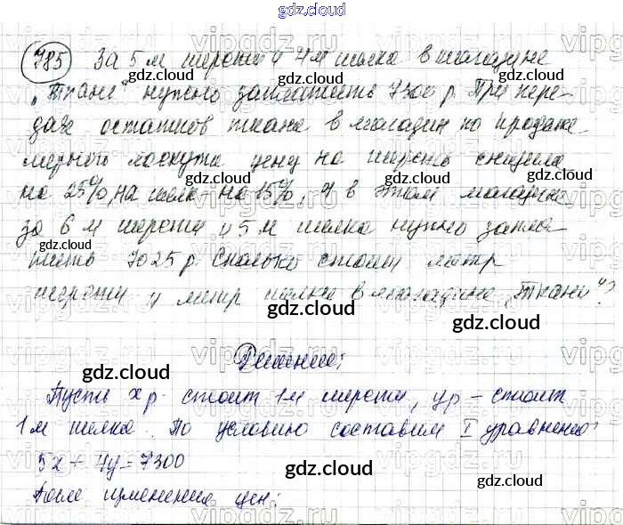 Ответ на задание 785 Учебник Алгебра за 7 (седьмой) класс Колягин, Ткачева, Федорова, Шабунин УМК 2012 ФГОС онлайн и без номера телефона.