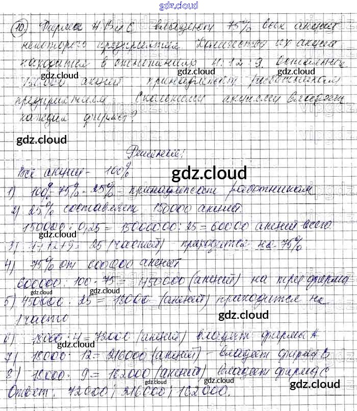 Ответ на задание 10 Учебник Алгебра  за 7 (седьмой) класс Колягин, Ткачева, Федорова, Шабунин УМК  2012