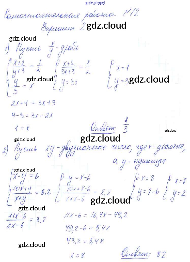 СР-12 Ответы к Самостоятельным работам. Варианты по Алгебре 7 класс Контрольные и самостоятельные работы Попов УМК   Экзамен