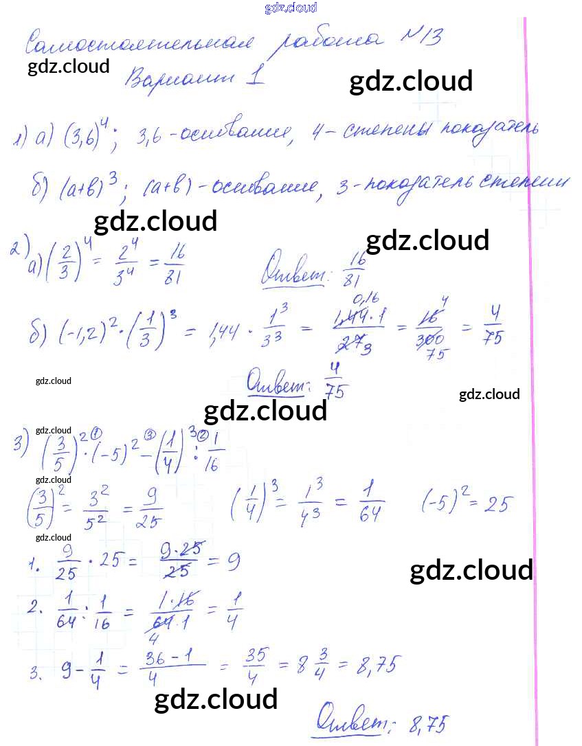СР-13 Ответы к Самостоятельным работам. Варианты по Алгебре 7 класс Контрольные и самостоятельные работы Попов УМК   Экзамен