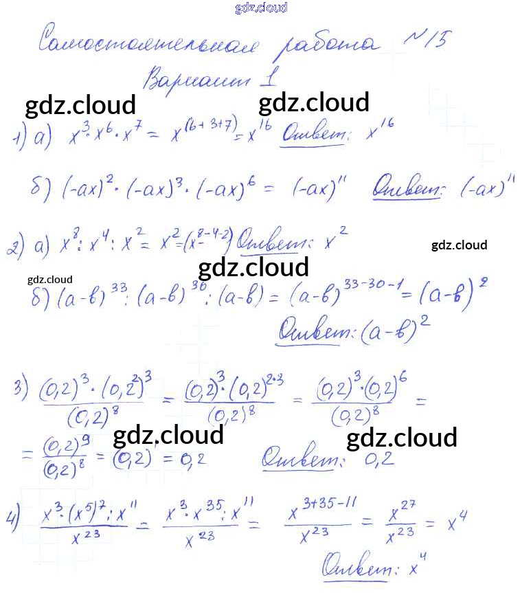 СР-15 Ответы к Самостоятельным работам. Варианты по Алгебре 7 класс Контрольные и самостоятельные работы Попов УМК   Экзамен