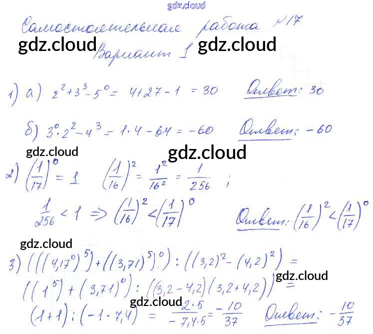 СР-17 Ответы к Самостоятельным работам. Варианты по Алгебре 7 класс Контрольные и самостоятельные работы Попов УМК   Экзамен