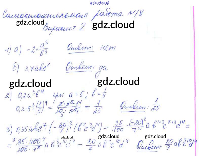 СР-18 Ответы к Самостоятельным работам. Варианты по Алгебре 7 класс Контрольные и самостоятельные работы Попов УМК   Экзамен