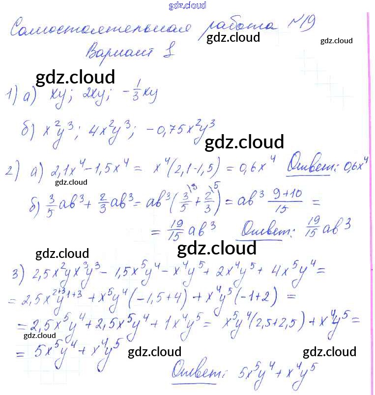 СР-19 Ответы к Самостоятельным работам. Варианты по Алгебре 7 класс Контрольные и самостоятельные работы Попов УМК   Экзамен