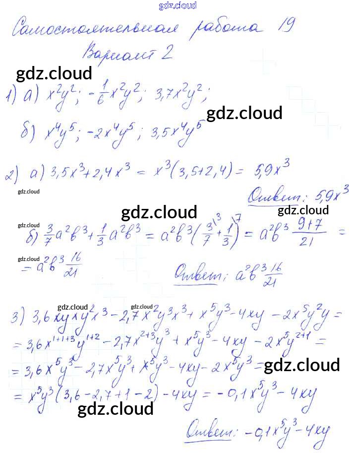 СР-19 Ответы к Самостоятельным работам. Варианты по Алгебре 7 класс Контрольные и самостоятельные работы Попов УМК   Экзамен