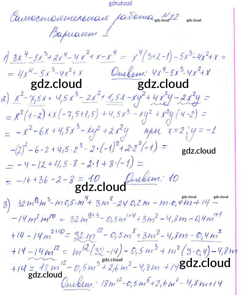 СР-22 Ответы к Самостоятельным работам. Варианты по Алгебре 7 класс Контрольные и самостоятельные работы Попов УМК   Экзамен