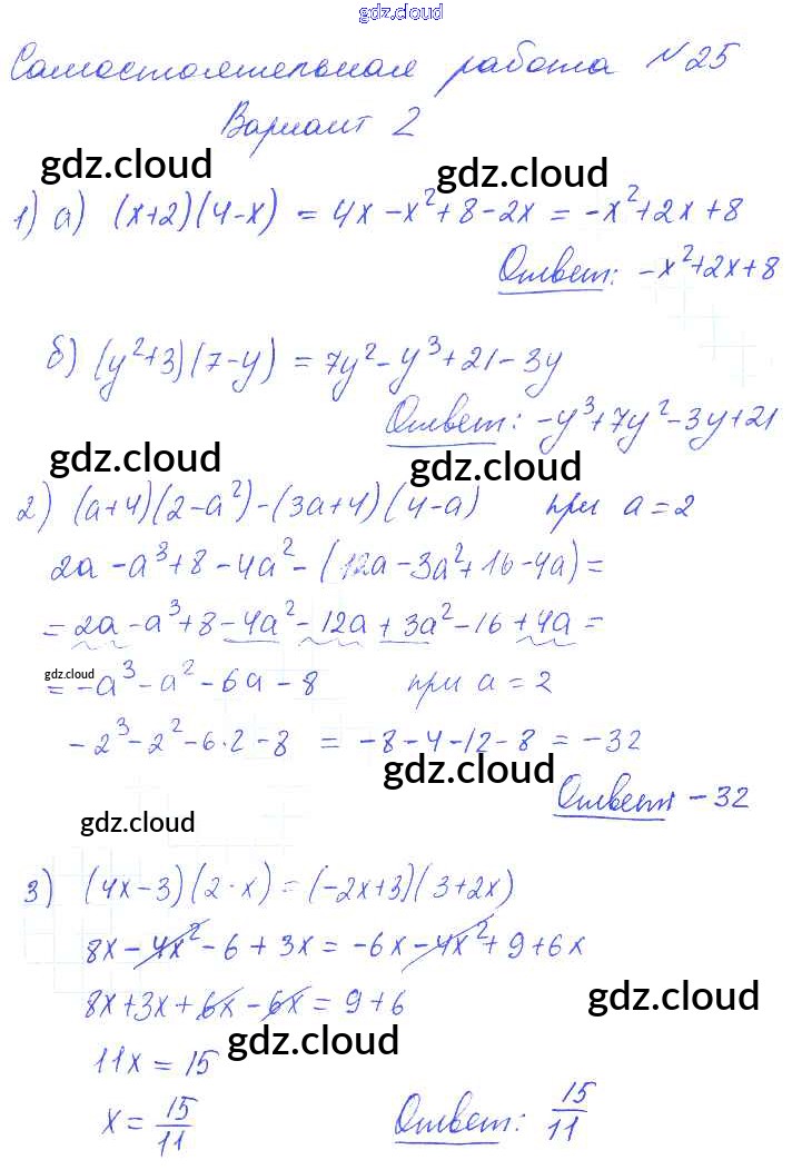 СР-25 Ответы к Самостоятельным работам. Варианты по Алгебре 7 класс Контрольные и самостоятельные работы Попов УМК   Экзамен