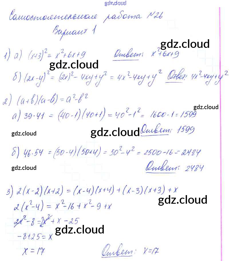 СР-26 Ответы к Самостоятельным работам. Варианты по Алгебре 7 класс Контрольные и самостоятельные работы Попов УМК   Экзамен