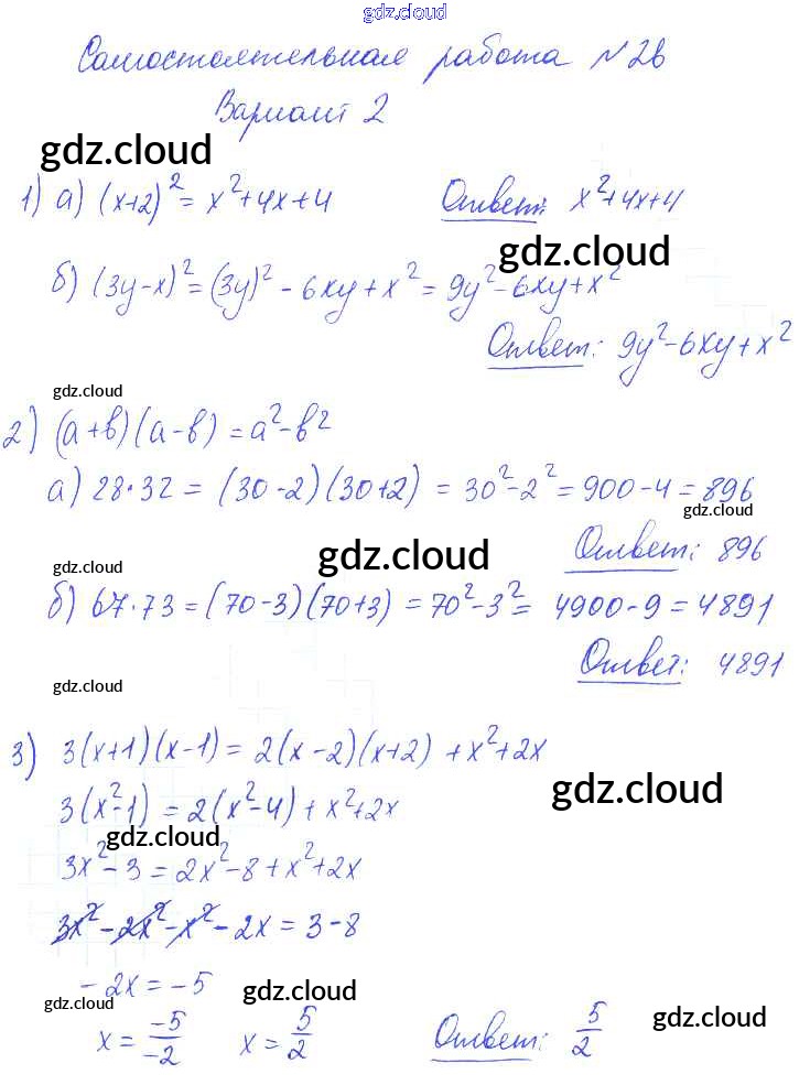 СР-26 Ответы к Самостоятельным работам. Варианты по Алгебре 7 класс Контрольные и самостоятельные работы Попов УМК   Экзамен