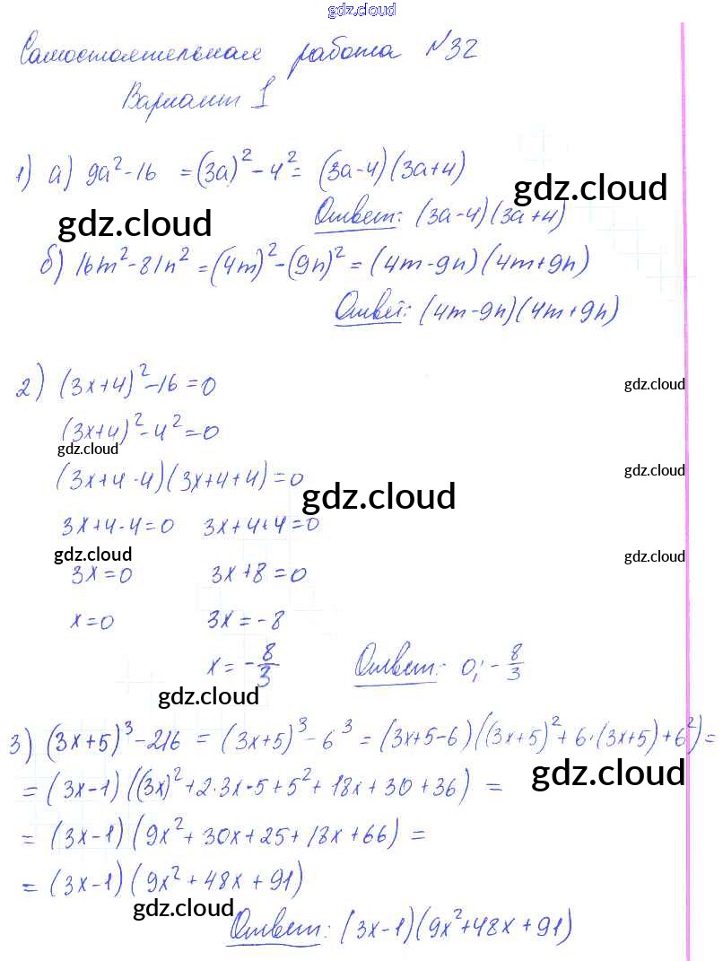 СР-32 Ответы к Самостоятельным работам. Варианты по Алгебре 7 класс Контрольные и самостоятельные работы Попов УМК   Экзамен