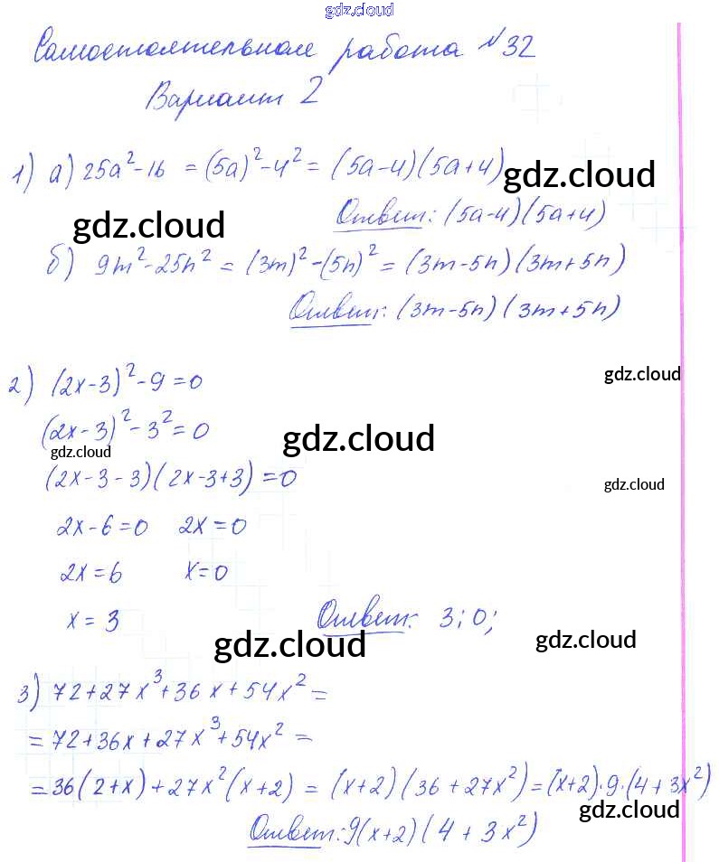 СР-32 Ответы к Самостоятельным работам. Варианты по Алгебре 7 класс Контрольные и самостоятельные работы Попов УМК   Экзамен