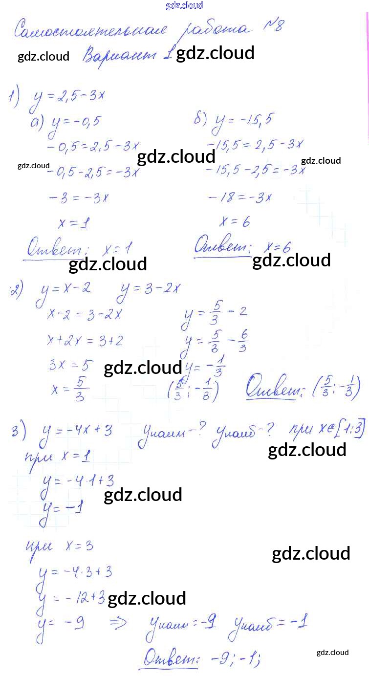 СР-8 Ответы к Самостоятельным работам. Варианты по Алгебре 7 класс Контрольные и самостоятельные работы Попов УМК   Экзамен