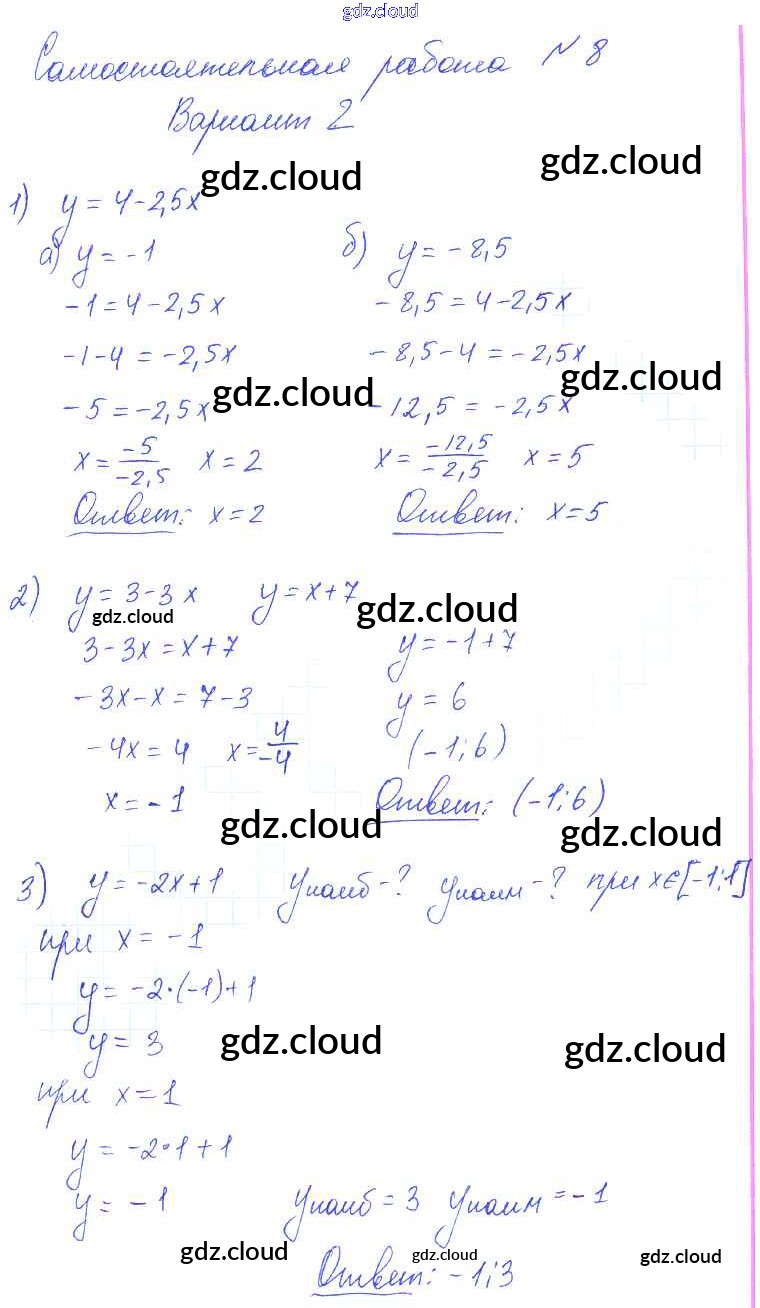 СР-8 Ответы к Самостоятельным работам. Варианты по Алгебре 7 класс Контрольные и самостоятельные работы Попов УМК   Экзамен
