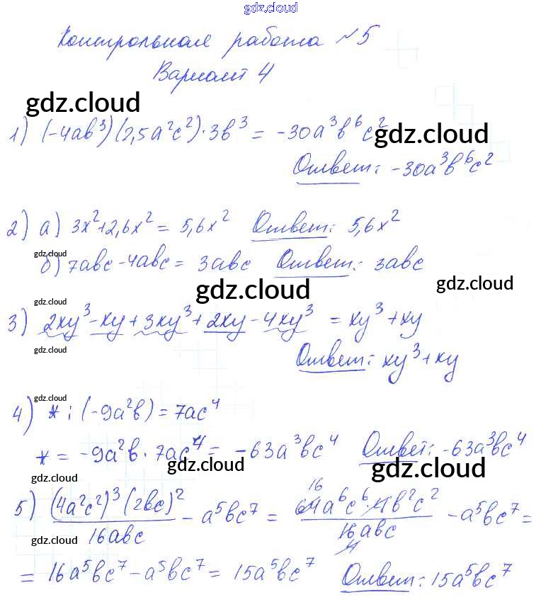 КР-5 Ответы к Контрольным работам. Варианты по Алгебре 7 класс Контрольные и самостоятельные работы Попов УМК   Экзамен