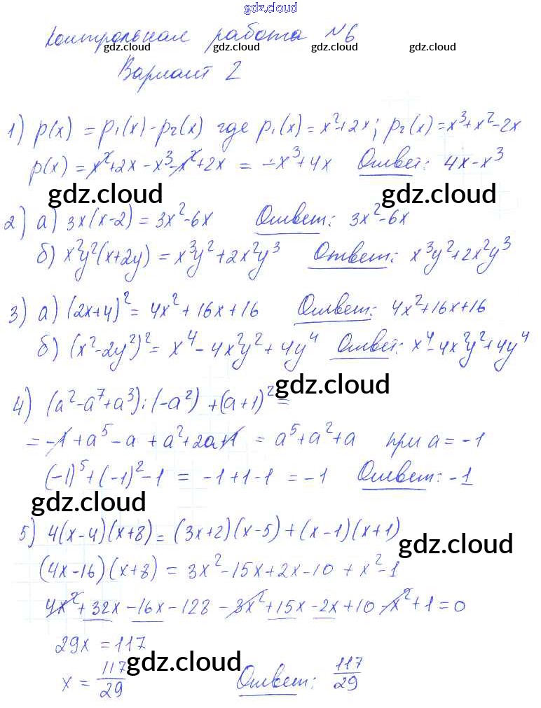 КР-6 Ответы к Контрольным работам. Варианты по Алгебре 7 класс Контрольные и самостоятельные работы Попов УМК   Экзамен