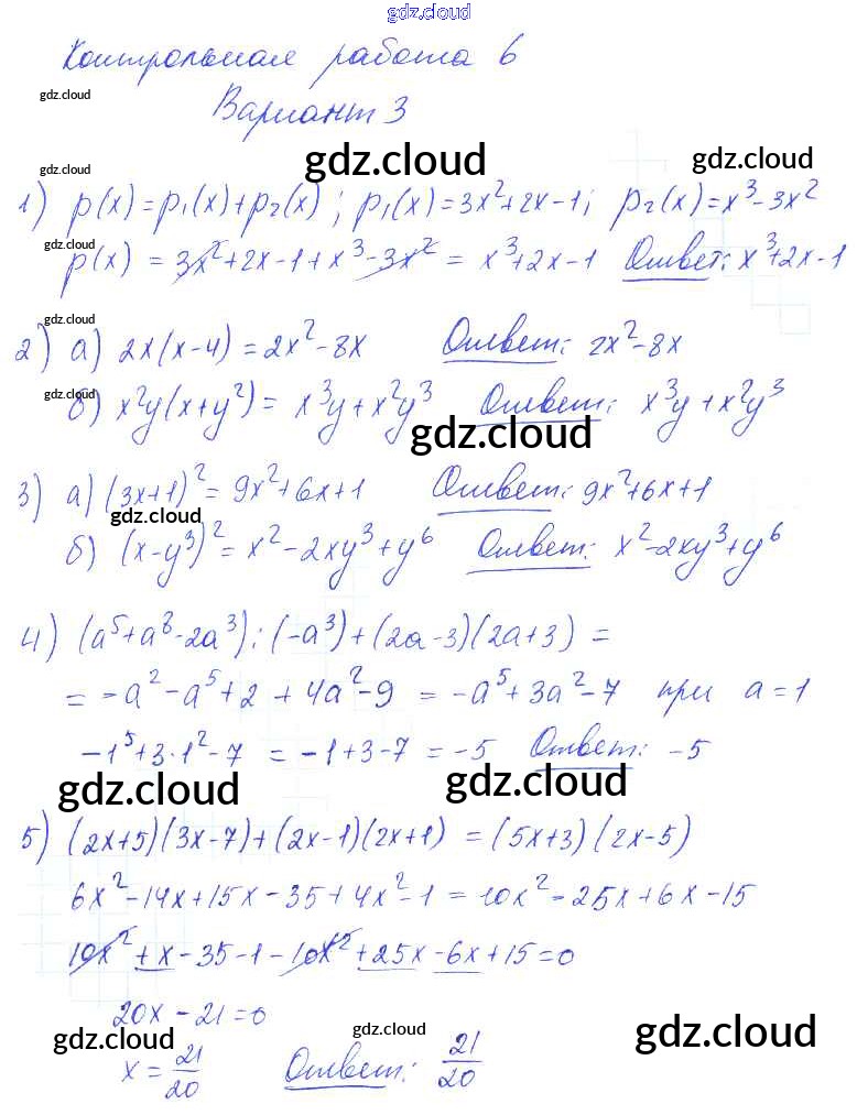 КР-6 Ответы к Контрольным работам. Варианты по Алгебре 7 класс Контрольные и самостоятельные работы Попов УМК   Экзамен