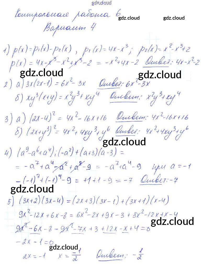КР-6 Ответы к Контрольным работам. Варианты по Алгебре 7 класс Контрольные и самостоятельные работы Попов УМК   Экзамен