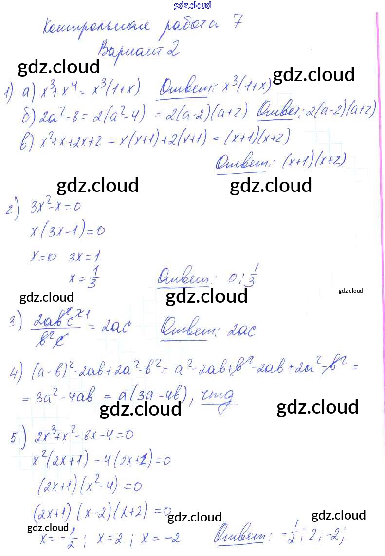 КР-7 Ответы к Контрольным работам. Варианты по Алгебре 7 класс Контрольные и самостоятельные работы Попов УМК   Экзамен
